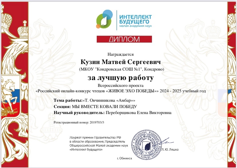 | Сын сотрудника Дзержинского районного суда Калужской области стал Лауреатом 1 степени, а также выиграл гран-при за лучшую работу во Всероссийском конкурсе чтецов «Живое эхо Победы». | версия для печати |